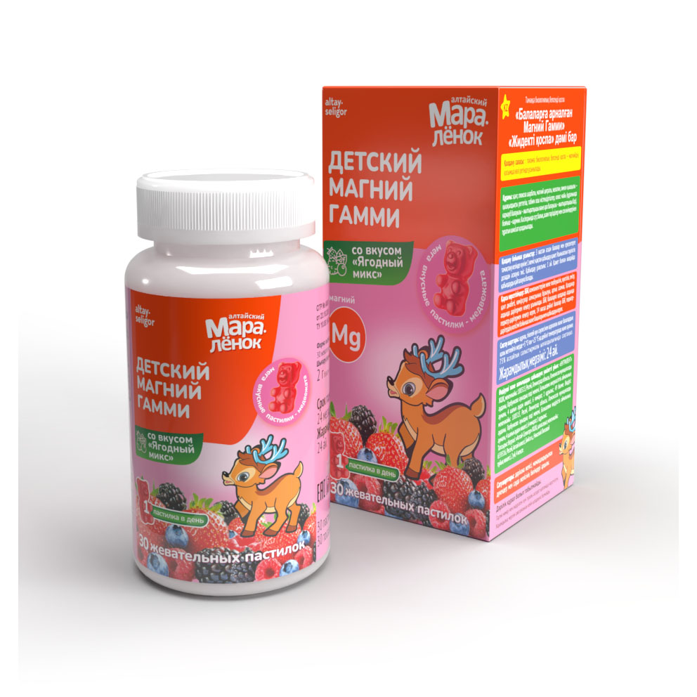 Мармеладные пастилки Алтайский мараленок «Детский витамин Магний Гамми» со вкусом ягодный микс – натуральный продукт для поддержания и восполнения дефицита магния в организме.