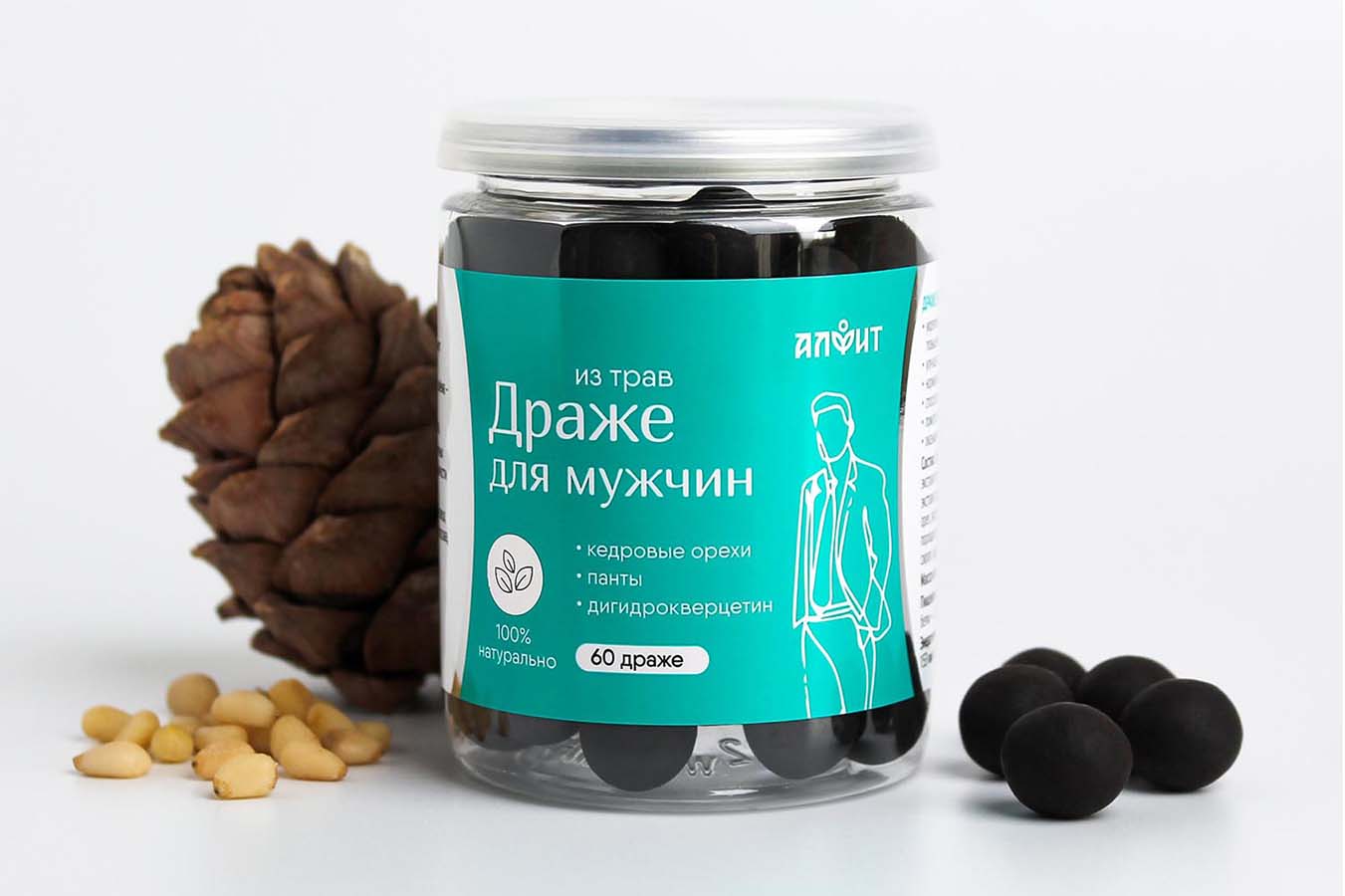 Драже для Мужчин с кедровым орехом, пантами и дигидрокверцетином, Алфит, 60 драже