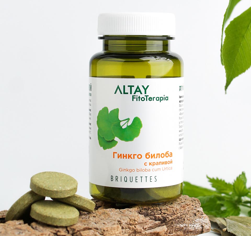 Гинкго Билоба с Крапивой, растительное сырье в брикетах Алфит, 25*2гр